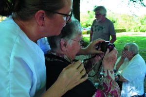 La photographe Ambre Ludwiczak propose de composer des duos, associant une personne qui a un handicap visuel et une qui voit. Les temps de prise de vue sont accompagnés d’un temps d’expression orale sur les sensations ressenties dans cet acte photographique. Puis, le visionnage des images réalisées est ensuite proposé afin d’observer le résultat capté.